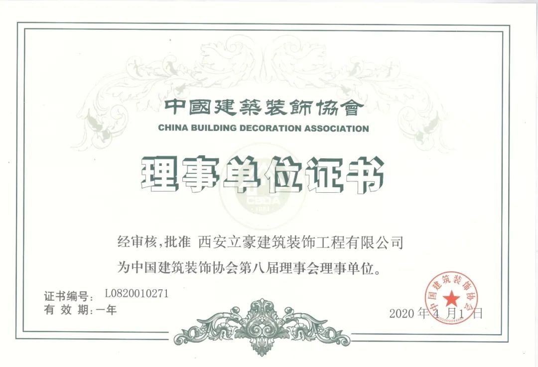 公司以扎實健全的質(zhì)量管理體系順利通過了由中國建筑裝飾協(xié)會組織開展的2020年建筑裝飾企業(yè)申報和認(rèn)定工作,同時受到了中國建筑裝飾協(xié)會的認(rèn)可和肯定,應(yīng)邀加入中國建筑裝飾協(xié)會,榮升為中國建筑裝飾協(xié)會第八屆理事會理事單位。
